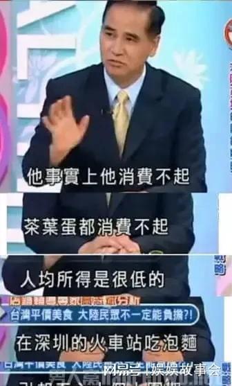 还记得吗?多年前台湾教授高志斌曾经在一档综艺节目中称,大陆人民收入低,普通大陆老百姓连“茶叶蛋”都吃不起;他还说“台湾人在深圳火车站吃泡面时引起五六十人围观”。