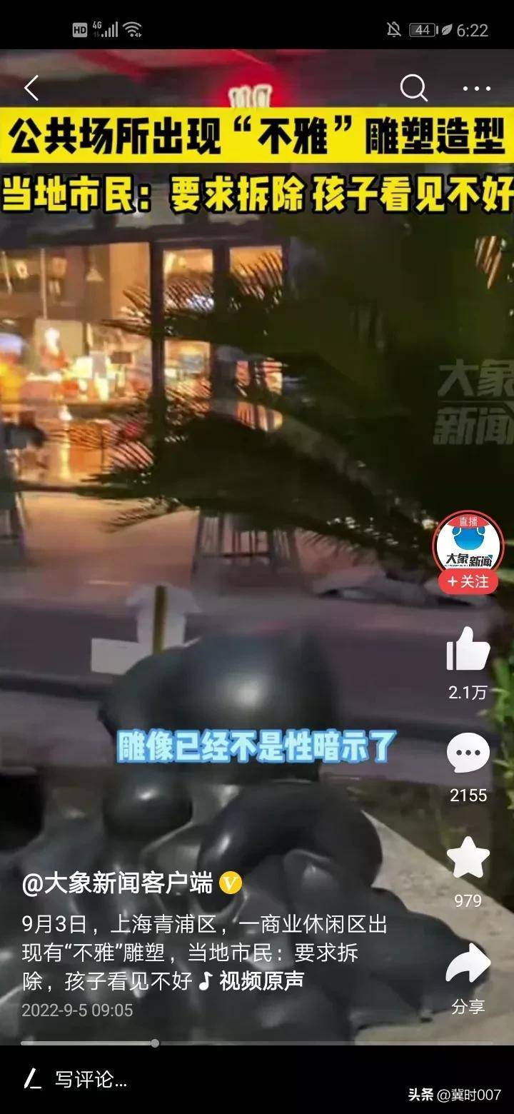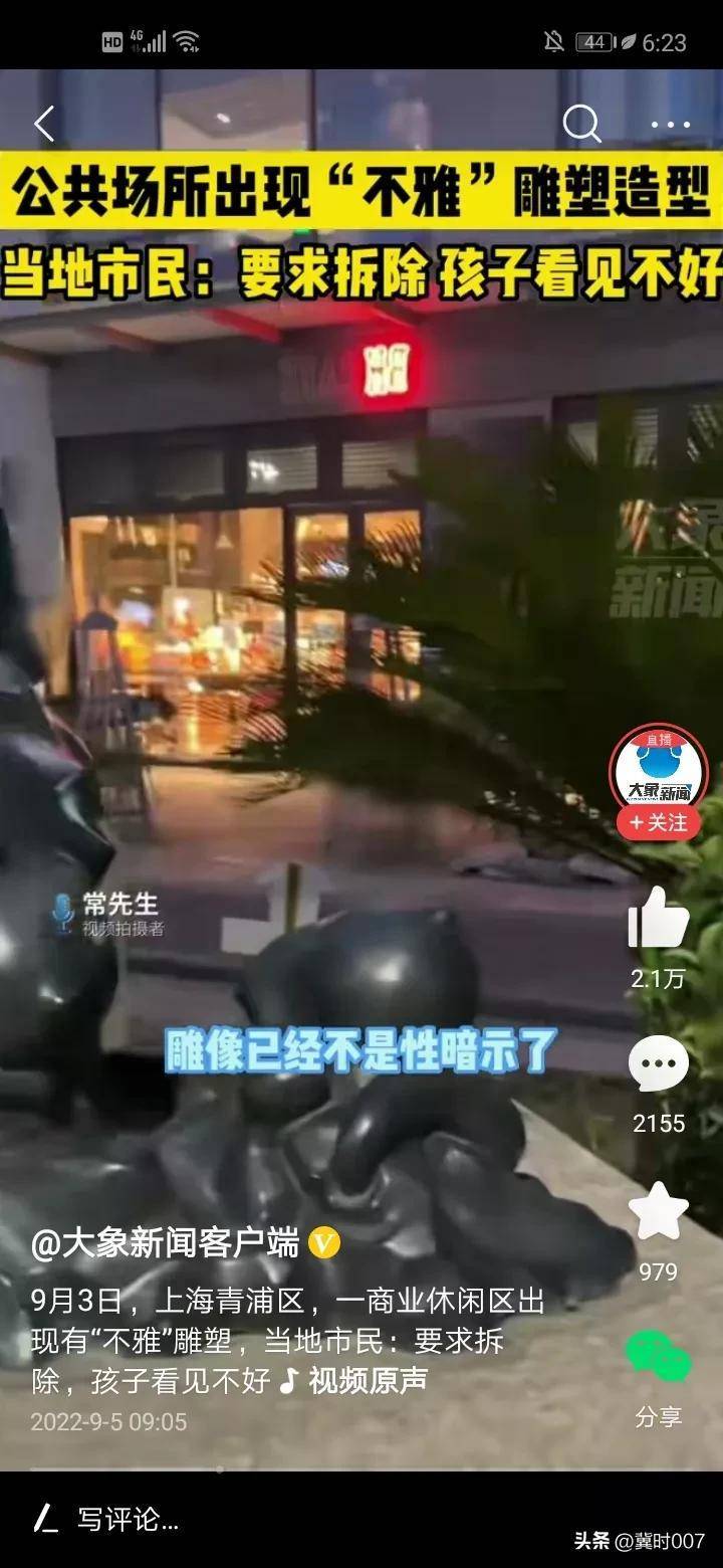 上海青浦区 一商业休闲区出现有“不雅”雕塑,当地市民:要求拆除 孩子看到不好。