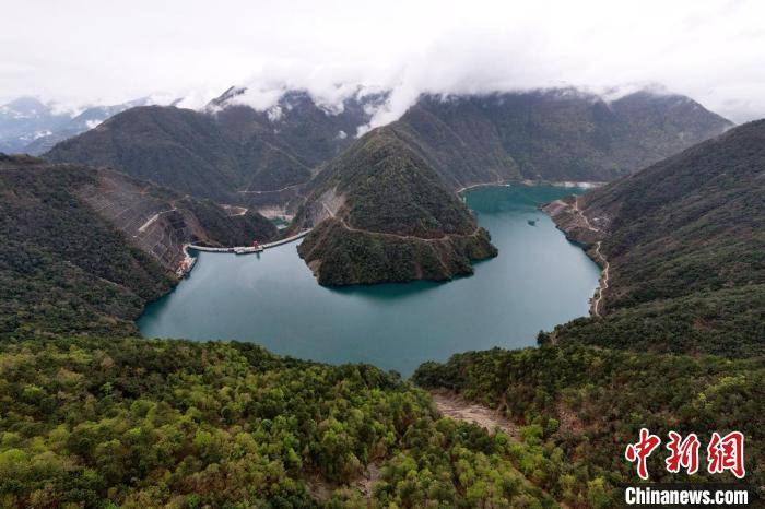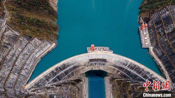 空中俯瞰大岗山水电站,这是大渡河上唯一一座超高薄拱坝电站。(资料图) 刘忠俊 摄