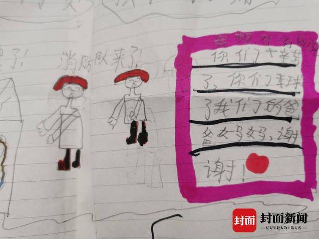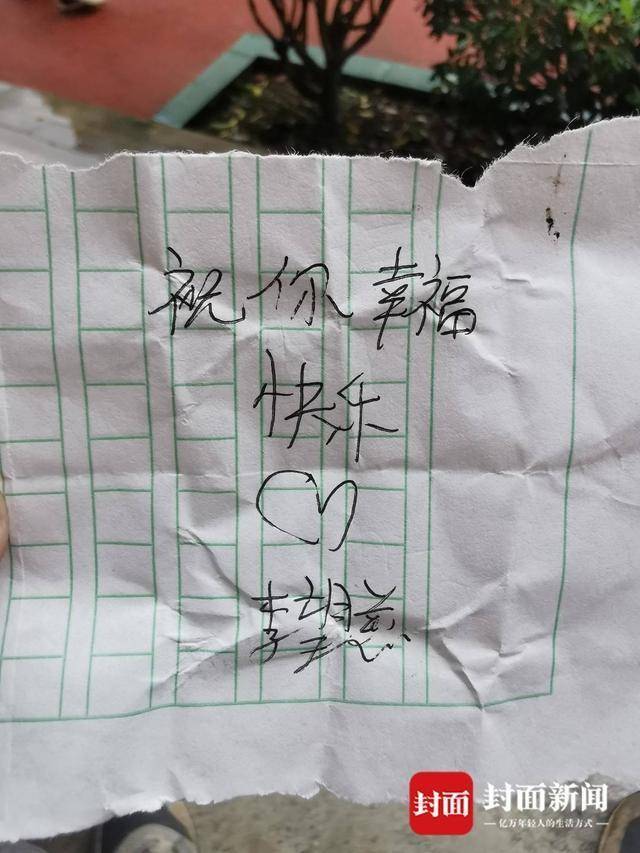 除了要签名,孩子们也写了很多话送给消防员们。消防员朱校营递给记者一张纸条,上面写着“祝你幸福快乐”,是一个叫李望慈的小孩子写给他的。在记者拍完照片后,他小心翼翼地将纸折叠起来,放到自己包里收好。