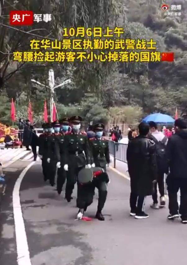 2020年,这两条视频中,小朋友“追星”的样子让很多网友瞬间被圈粉,武警弯腰捡起掉落国旗,后面“小迷妹”碎步紧跟不舍。2020年10月6日,华山景区内武警战士们正在执勤,看到不小心掉落在地上的国旗一位武警战士迅速弯腰捡起后,将国旗拿在手中,继续向前走,这时,在队伍的后面有一个小女孩蹦跳追来秒变“小迷妹”,她紧跟武警队伍有模有样学着走了几步正步后略带不舍地离开。