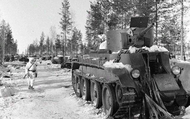 苏奥穆萨尔米村的战斗刚一结束,芬军主力就穿过封冻的湖面滑雪南下,对拥挤在拉泰公路上的苏军第44师的行军纵队实施切割、围歼。战斗中,芬军刚从战场上缴获的战利品也派上了用场。