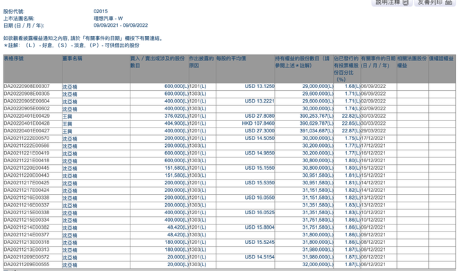 这并非是沈亚楠近期内第一次减持。从港交所官网所披露的信息来看, 9月2日沈亚楠已经减持了40万股,交易均价13.2221美元,持股比例由1.74%降至1.71%,套现528.88万美元(约合人民币3661万元)。