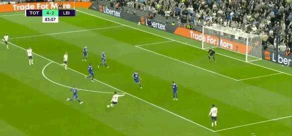 随后第83分钟,凯恩前场送出直传,孙兴慜左脚直接兜射弧线球破门,顺利完成梅开二度!