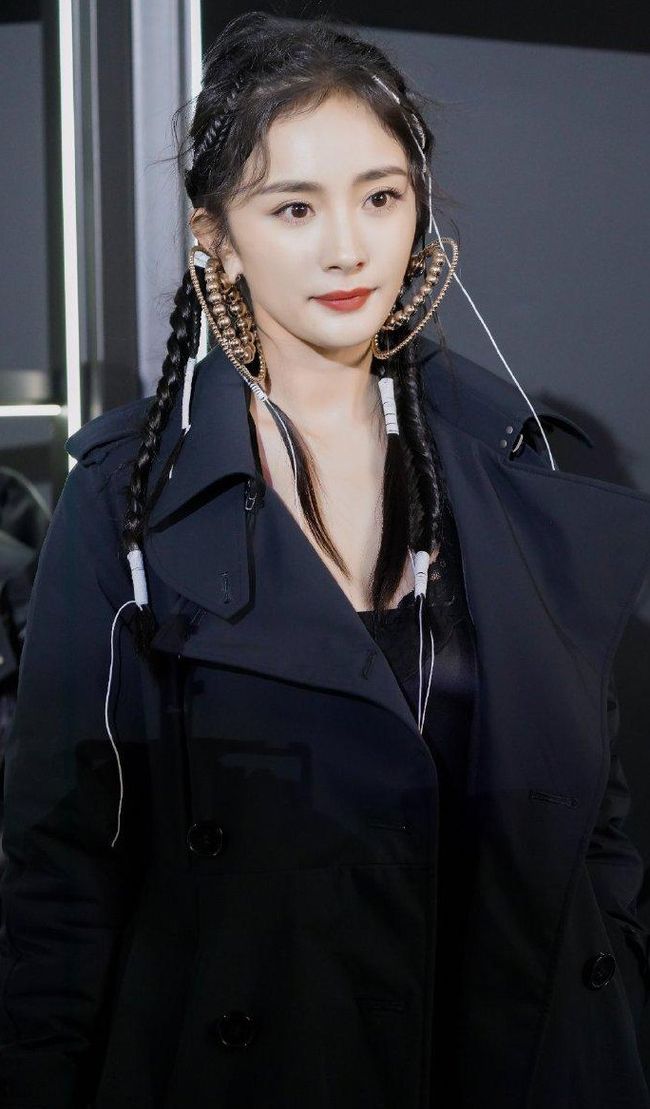 杨幂罕见街头风编发造型 搭配金色大耳环效果又飒又酷