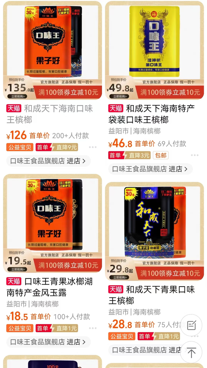 槟榔行业龙头口味王集团曾在2018年表示,下一个十年要将口味王发展成为千亿企业,走向世界。2014年,口味王率先推出高端槟榔品牌“和成天下”,一袋几十上百元,上市六年卖出8亿包。
