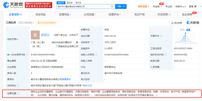 然而,9月21日,即南宁市行政审批局公示公告次日,小重政商务被“打回原形”,公司名称已变更回原来的南宁市小重政商务秘书有限公司,其经营范围目前也已变更为:提供企业住所托管服务,企业登记代理服务,代理记账服务;商标代理;企业管理信息咨询,商务信息咨询,教育信息咨询;销售:日用百货、电子产品(除国家专控产品)、办公用品、通讯设备、建筑装饰材料(除危险化学品)。
