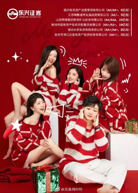 12月24日,东兴证券一组簿记发行宣传照走红网络,引发网友热议。这组照片共有两套主题造型,除职业装外,还有一套则颇具节日气氛。照片中5位身材窈窕的女生打扮着装十分吸引,但她们并非偶像女团成员,而是来自东兴证券债业务总部。