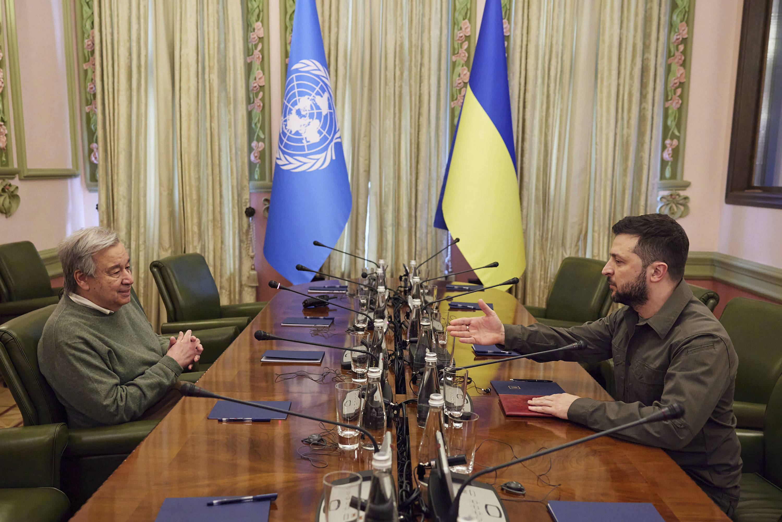 当地时间2022年4月28日,乌克兰基辅,联合国秘书长古特雷斯与乌克兰总统泽连斯基在基辅举行会晤。 人民视觉 图