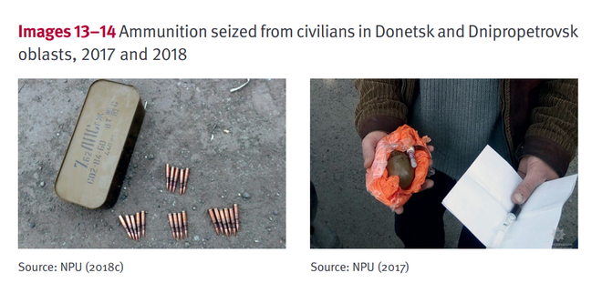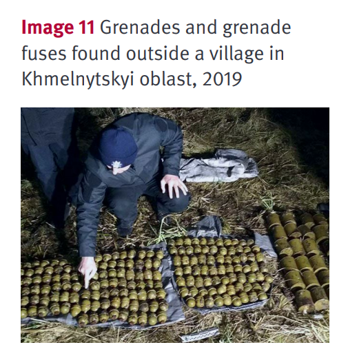 美国智库史汀生中心(Stimson Center)的一份报告显示,乌克兰的武器盗窃和转移并不局限于小型武器,作战武器或军用级武器在乌克兰被转移到非法武器贸易市场的风险甚至更高。一方面,军用级武器的倒卖在乌克兰被视为是一项“有利可图”的生意,数以千计的手榴弹、火箭弹和地雷从顿巴斯地区周围的冲突区,扩散到乌克兰全国各地的城镇。
