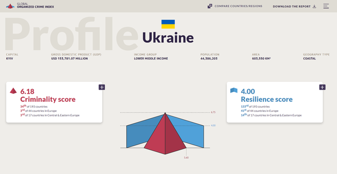 ↑有数据显示,乌克兰在全球有组织犯罪指数榜单上排在所有欧洲国家中的第三位