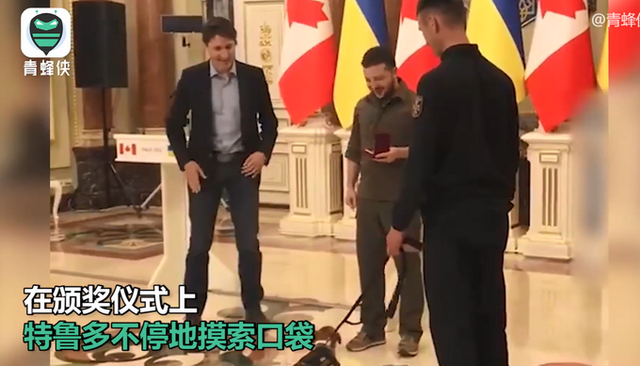 在颁奖仪式上,特鲁多不停地在口袋里摸索,貌似想给狗找点吃的,但最后什么也没找到。不少网友表示看到视频后表示,我笑了。