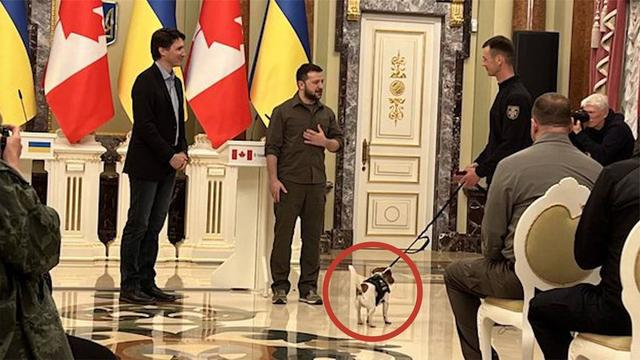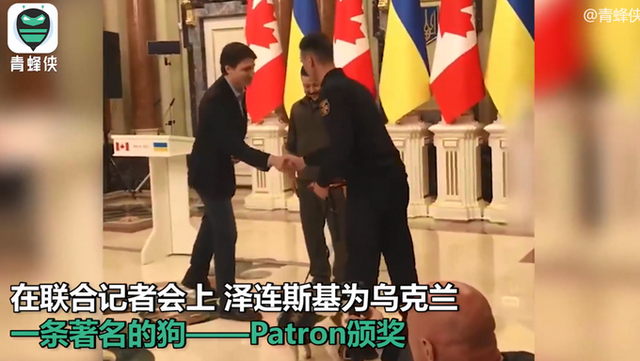 【泽连斯基当特鲁多面给狗颁奖】当地时间8日 ,泽连斯基和特鲁多共同在基辅出席了七国集团(G7)领导人电话会议。 泽连斯基表示,特鲁多的访问对乌克兰意义重大,两国通过共同努力能够克服所有挑战。在联合记者会上,泽连斯基为乌克兰一条著名的狗——Patron颁奖。这是什么情况?