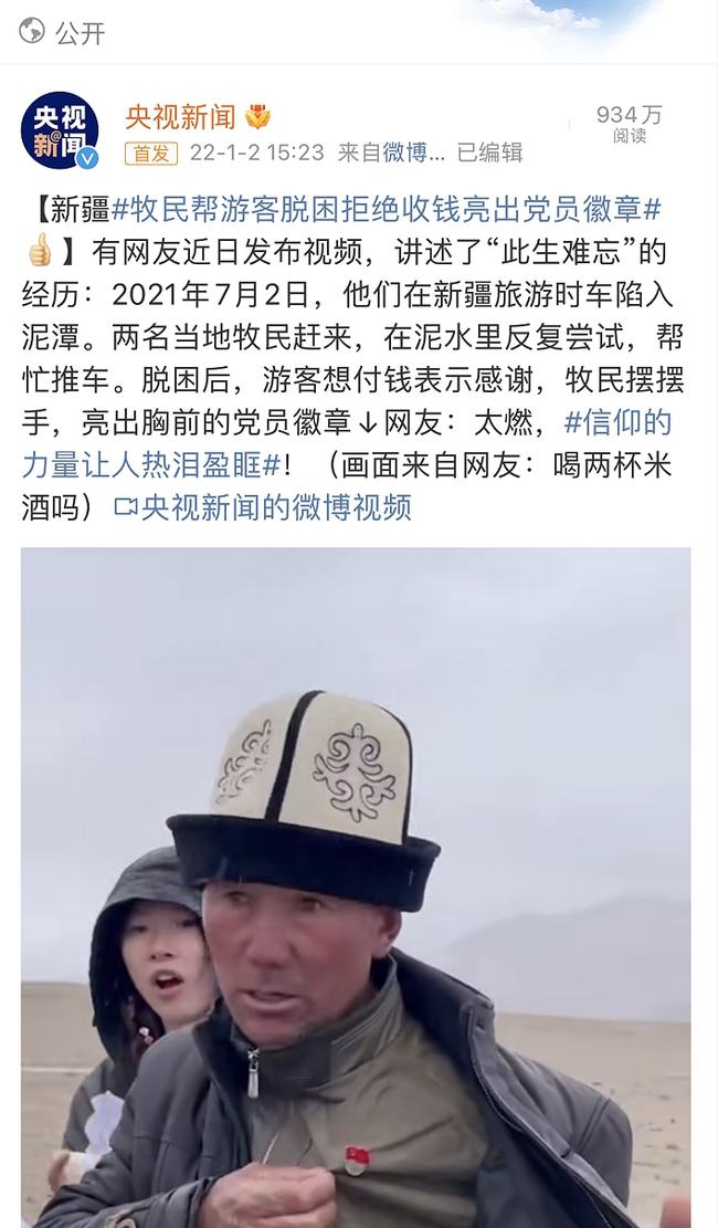 《牧民帮游客推车拒收钱展示党徽》的视频