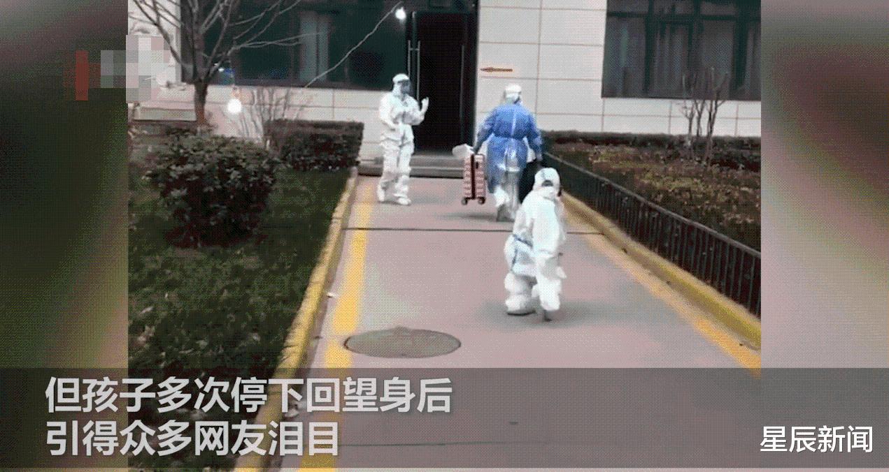 这一幕让不少网友都破防了,有网友表示,莫名的酸楚!小小只,一脸懵懂无辜的小眼神,防护服下蹒跚迟疑的小步伐让人不忍直视!还有网友称,孩子很懂事,没有哭闹,心里一定很无助,很想哭,可是他忍住了,为这位孩子点赞!