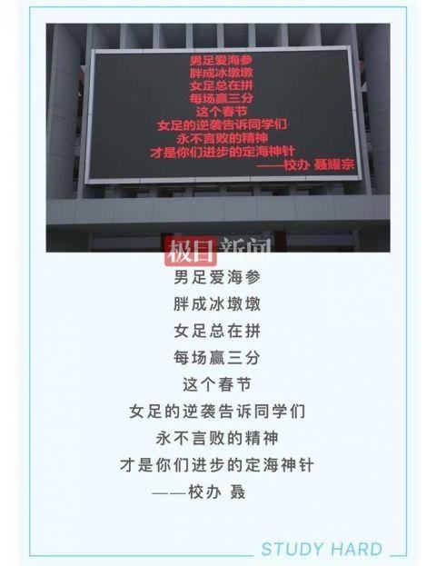 这个口号很有创意。赞美学校。相关视频上传到互联网上后,许多网民肯定了学校的创意。然而,一些网民质疑学校是教书育人的地方。这个口号和许多球迷一样简单粗暴地嘲笑男子足球队,愤怒可能会影响学生。