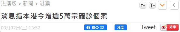 (观察者网讯)据香港“东网”报道,消息指,香港3月2日新增超过5万例确诊病例,再创单日新高,累计病例数逼近30万例。