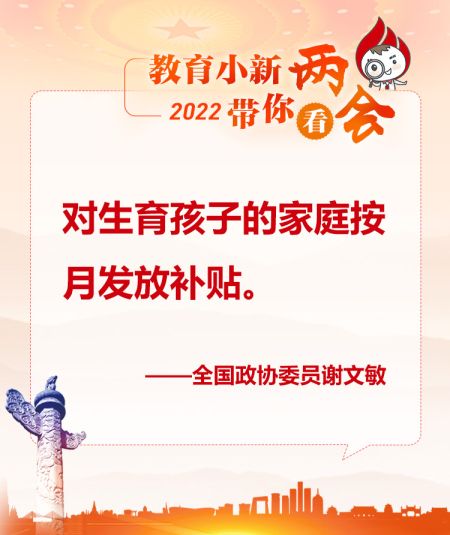 谢文敏委员:对生育孩子的家庭按月发放补贴
