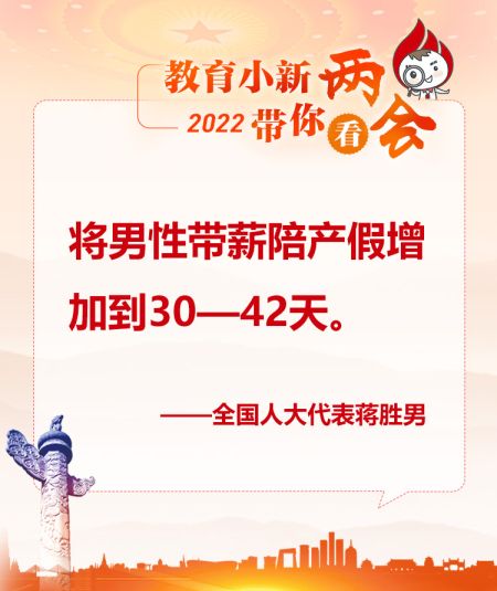 蒋胜男代表:将男性带薪陪产假增加到30—42天