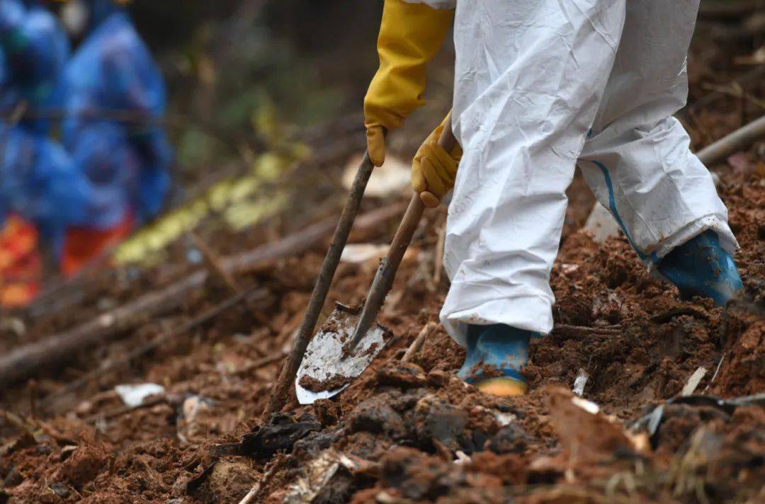 2022年3月28日,搜寻人员在事故现场工作。当日,“3·21”东航MU5735航空器飞行事故救援进入第八天,搜寻工作仍在紧张进行中。新华社记者 黄孝邦 摄