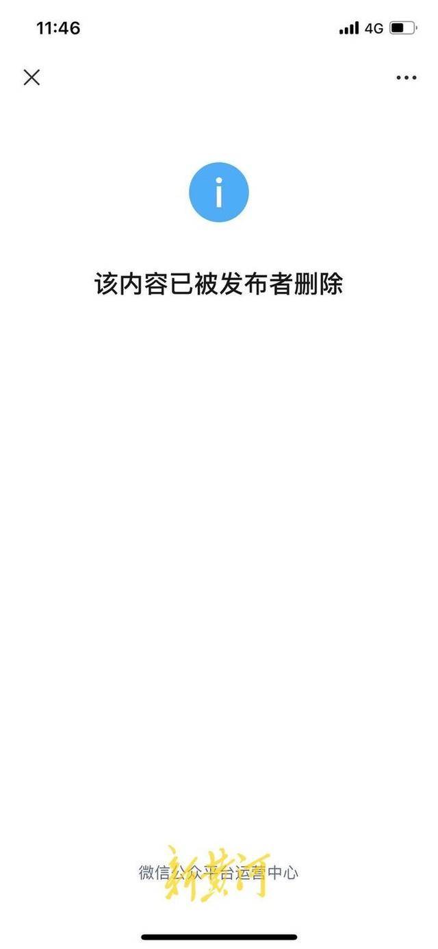 上午11点46分,记者再次尝试打开该文,显示“该内容已被发布者删除”。
