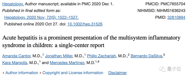 2020年,在肝病学顶刊《HEPATOLOGY》上的一项研究表明,在44名儿童多系炎症综合征(MIS-C)患者中,有19名出现了肝炎症状。