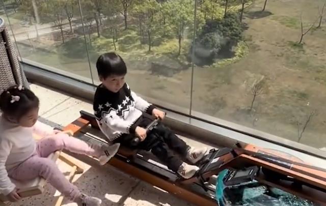 直接孩子们假装在阳台上面做出划船的举动,而且设施也十分齐全这样不仅帮助孩子们锻炼身体还能为以后的划船做准备。同时在家中也开始了野餐跟露营,这时有细心的网友们发现他们的野餐垫是豪车所赠送。