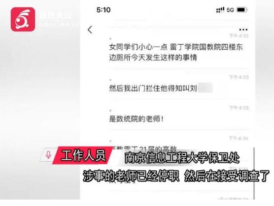 该学院女学生表示,当时她们正在如厕,突然发现有位学院老师正从门外探出头来,疑似在偷窥。