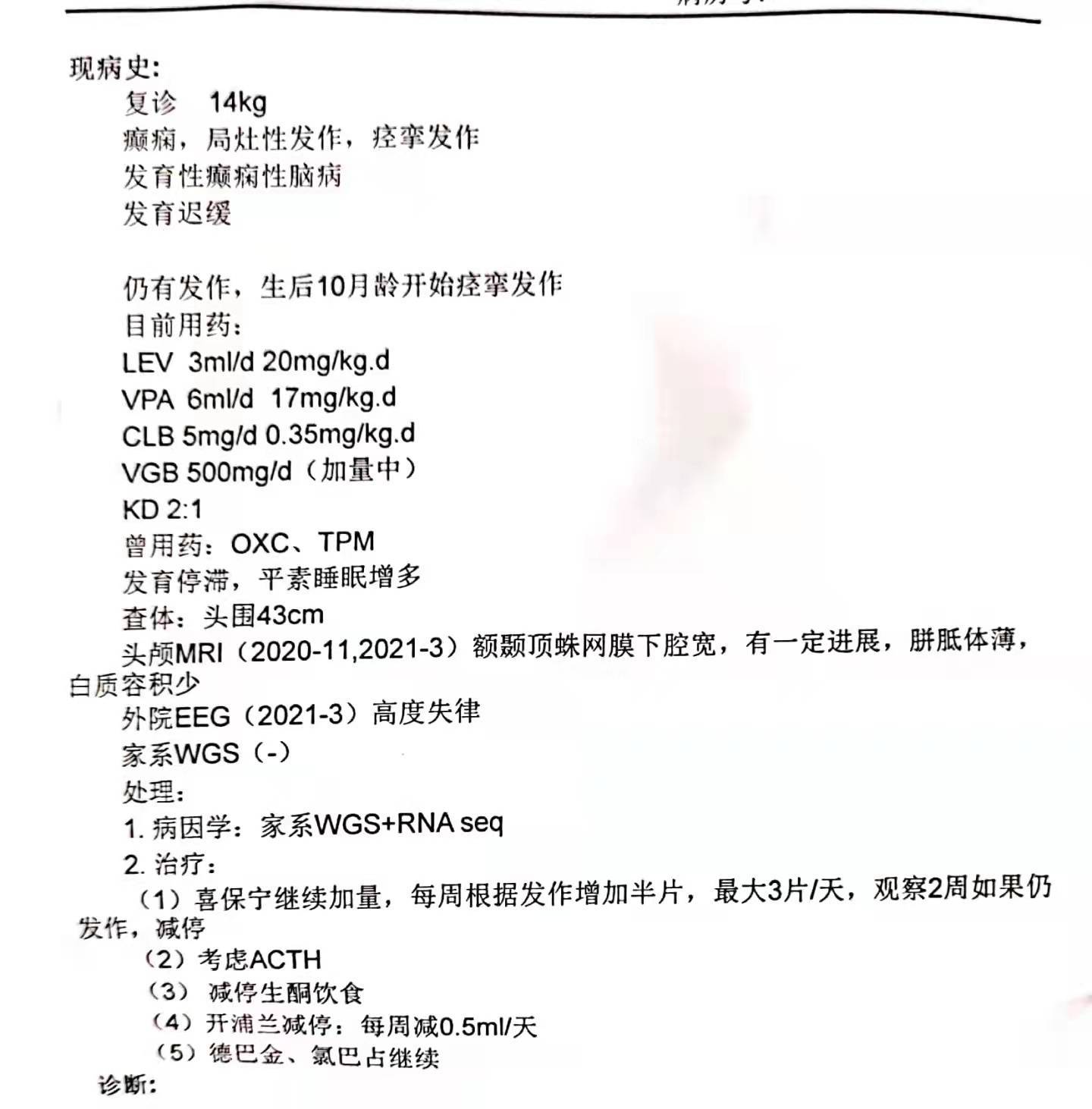 李芳:没有,癫痫只是疾病的表现形式,具体病因至今都没有查出来。我们带他去了很多医院,河南省妇幼儿童医院、郑州儿童医院、清华大学玉泉医院……也在网上问了很多专家,他们都说他是基因突变。我们做了全外显子测试、染色体核型分析等,却查不出来具体是哪个基因突变了。可能等医学更发达了,才能检查出孩子的病因。