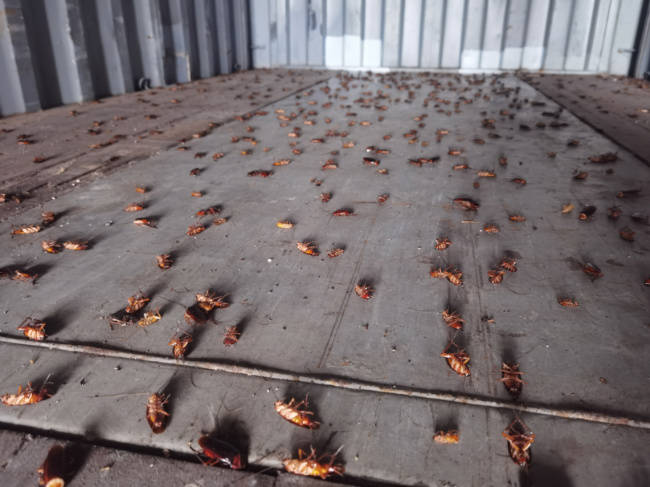 事发当天,海关关员在对一批来自境外的空集装箱查验时发现,其中一个集装箱柜刚一打开,大量黑褐色蟑螂便到处乱窜。关员立即关闭柜门,随后对该集装箱实施全面消杀。经鉴定,该集装箱内蟑螂体长约2-4厘米,为美洲大蠊,数量约2000只。