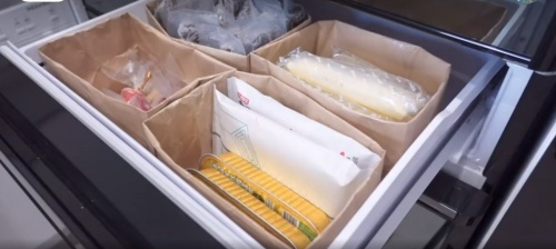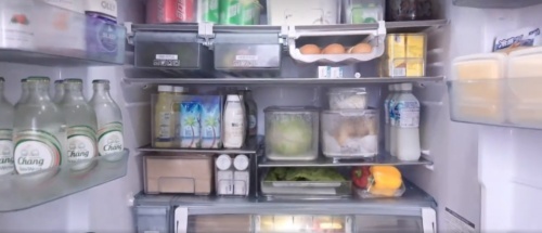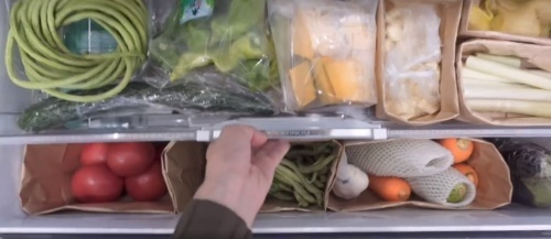 鸡鸭鱼肉蛋奶蔬菜水果仅有尽有,一样不缺,摆的仅仅有条,这冰箱实在是太能装了,视频女子的抢菜功力也是不得不让人羡慕。