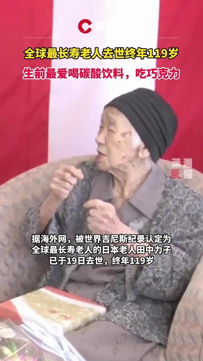 4月19日,曾被吉尼斯世界纪录组织认定为“全球在世最长寿老人”和“全球在世最长寿女性”日本老人田中力子去世,终年119岁。