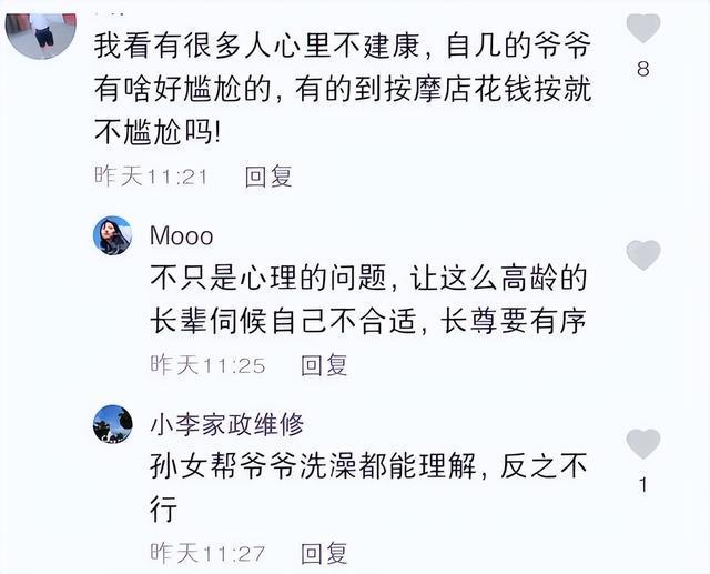 对此,当事人张女士回应称,爷爷在年轻的时候就会按摩,因为妈妈做得不好他才亲自上手。她跟爷爷奶奶有很深的感情,对自己来说,也是想让爷爷感受到,自己还像小时候一样需要他。
