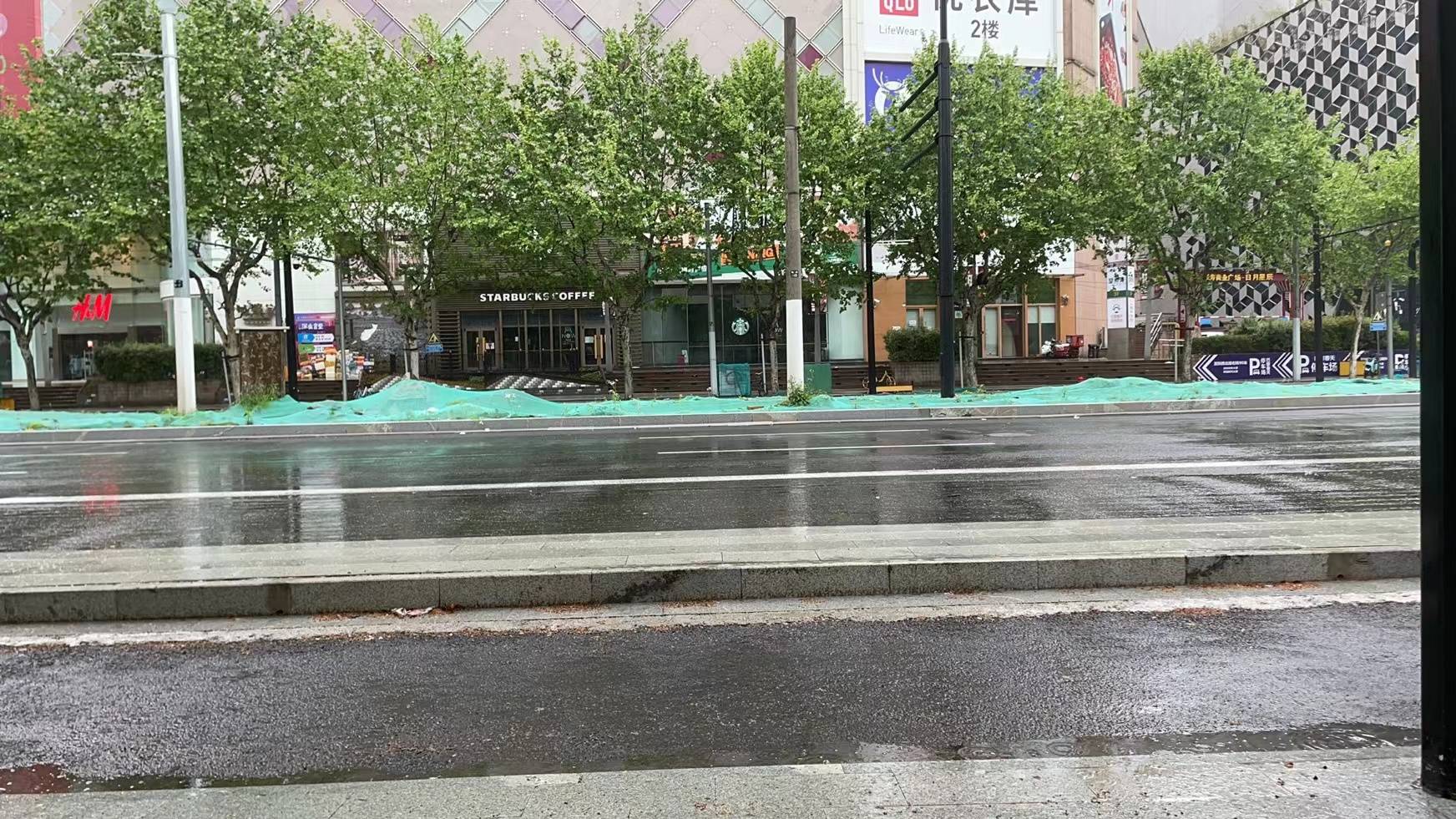 李瑞在公交站躲雨时拍下的照片。受访者供图