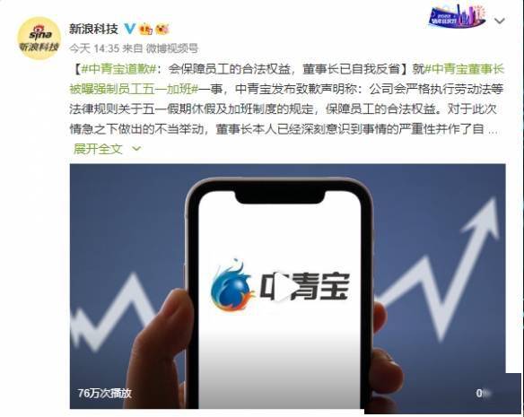 中青宝董事长在被曝光强制要求员工五一加班之后,中青宝官方发布了道歉声明,并表示,会严格执行劳动法等法律规则关于五一假期休假及加班制度的规定,保障员工的合法权益。