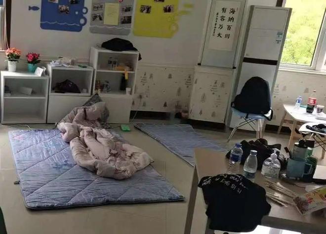 到3月底,共有22人留在了德锦苑小区成为“内保防疫大白”。他们住在陈桥居委会二楼的一间活动室,只有一张钢丝床,其余的21人打地铺。