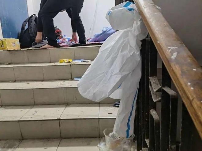 当晚,他们找到一处商场的地下车库,计划在那里过夜,走到里面发现有人占了。安全通道的二楼、三楼还没人,他们在那里打地铺,临时安了家。