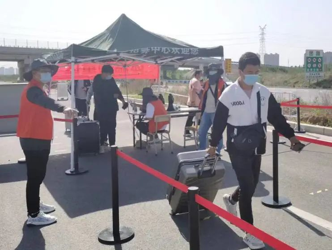 富士康郑州工厂将求职人员报道地点设置在郑州市航空港区北收费站出站口前方50米,接驳点设置【信息查验区】【体温检测区】【人员编组区】。