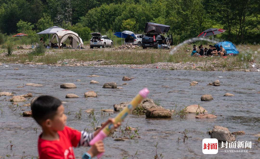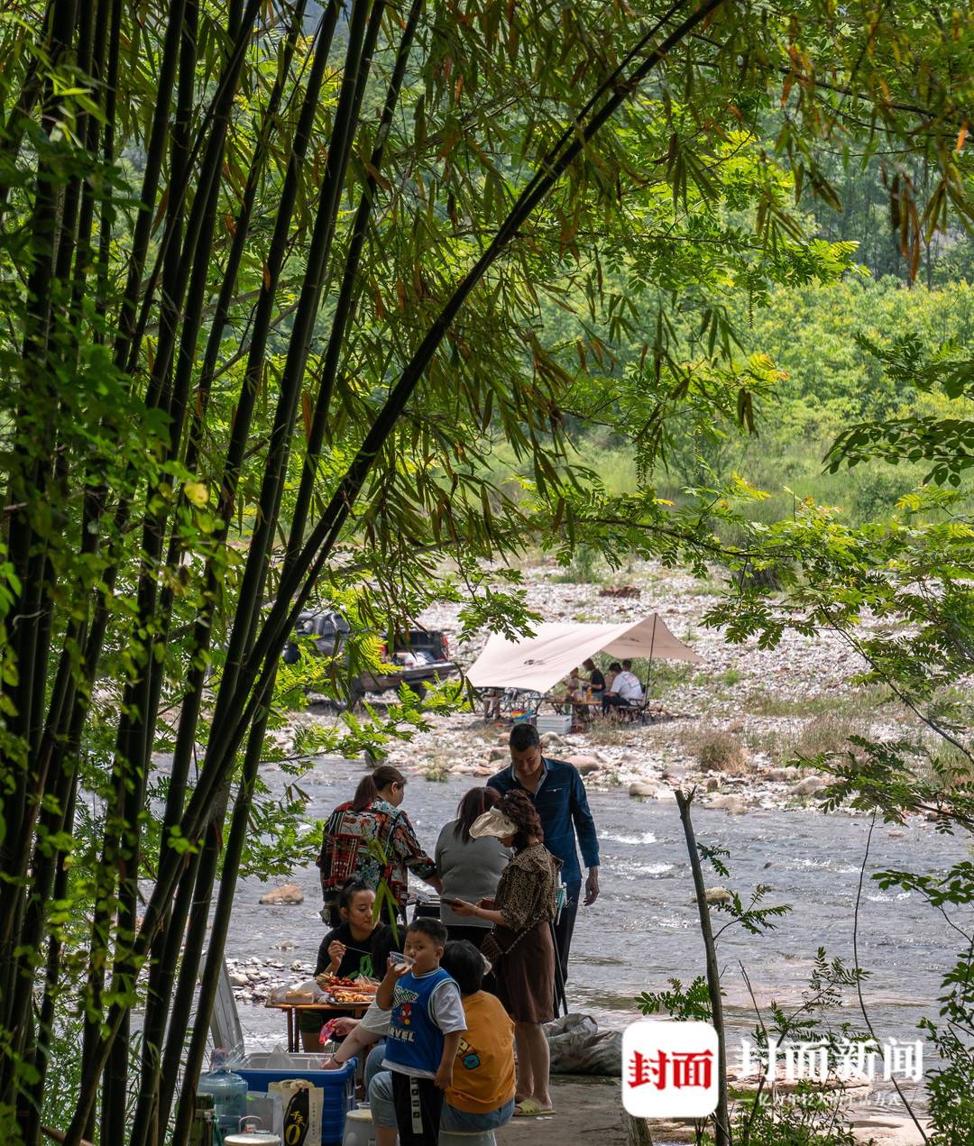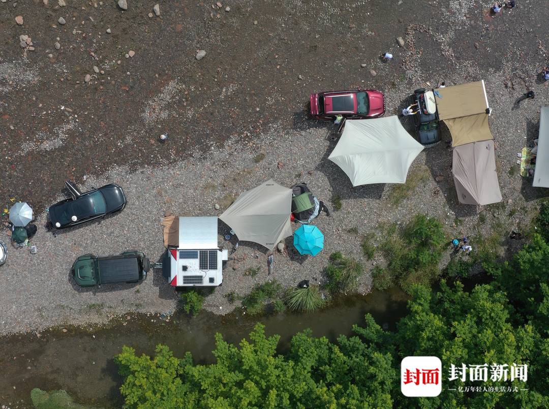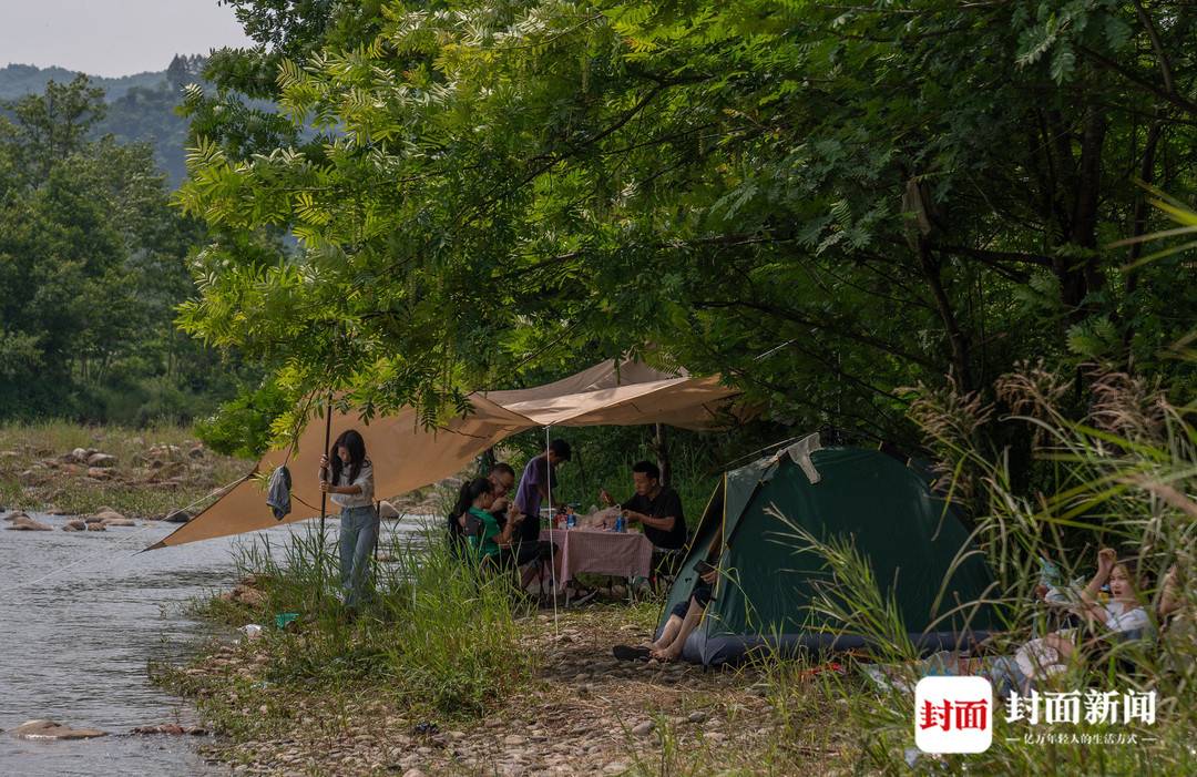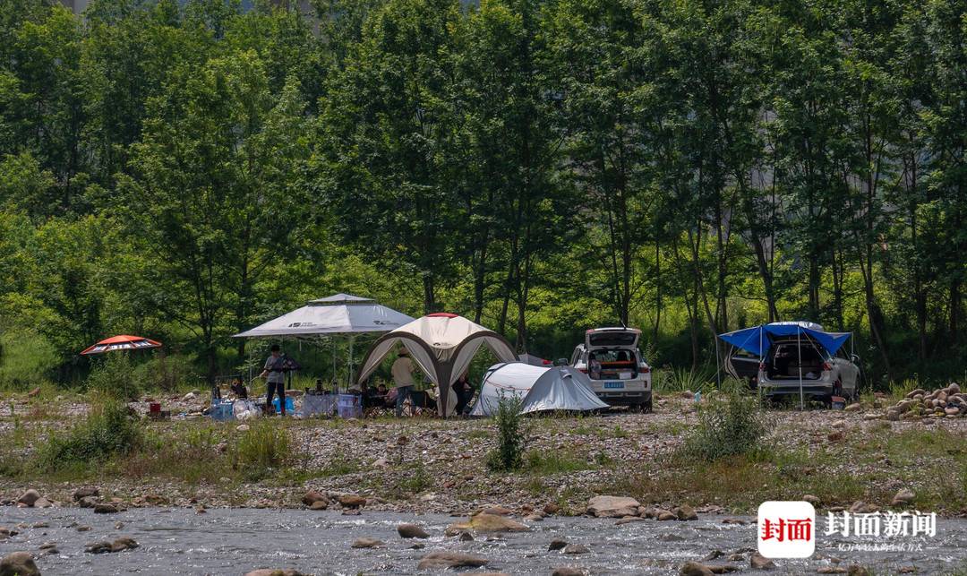 这个五一假期,不少市民都选择近郊休闲游。在成都周边的公园和郊区,从溪水边到草地上,都能看见市民们搭建的一顶顶帐篷和天幕。帐篷下,大家在户外享受美食和休闲时光。