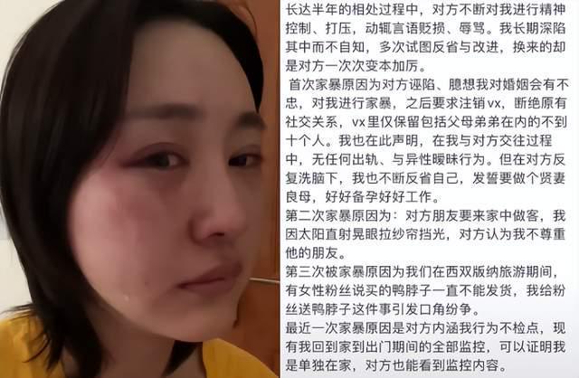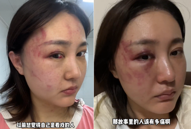除了陈述事实之外,徐大宝还晒出了自己被家暴过后的一些图片。可以看到她的脸上满是淤青,眼睛内红色的印记看上去有些触目惊心。徐大宝还配文称“以前总觉得自己是看戏的人,其实自己才是故事里的那个人”,真是让人十分同情。