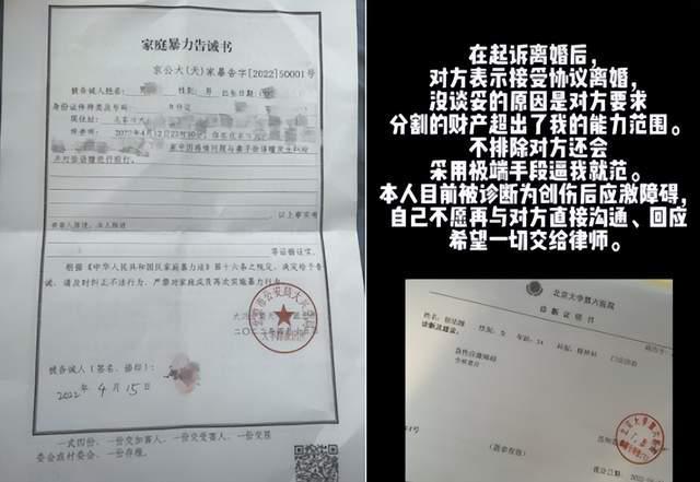 关于家暴,徐大宝也并非口说无凭。视频中她将报警后的家庭暴力告诫书晒了出来,同时也晒出了自己被诊断为创后应激障碍的诊断书,一张张纸记录着这段不幸的婚姻,也能看出对徐大宝造成了多大的影响。