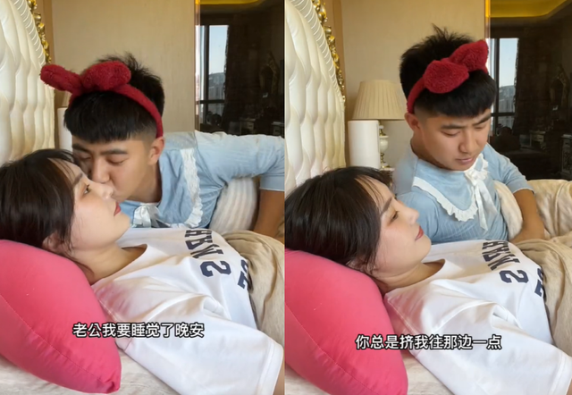 翻看两人以前的视频,甜蜜的过往还历历在目。此前徐大宝和贾洪清还一起拍段子,贾洪清模仿老婆睡觉前的一些习惯。两人亲吻、甜蜜地躺在一起,看上去美好又幸福。但没想到幸福可以假装,躺在一起的夫妻二人也可以变成家暴中的施暴者和受害者。