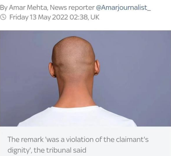 一名叫托尼·芬恩的英国男子,在约克郡一家公司工作期间,被主管称他为“秃头”,他认为公司存在“性骚扰行为”。然后,就此对公司提出诉讼。