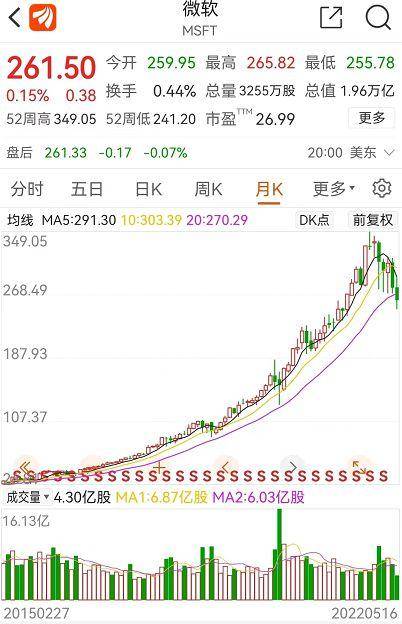 而从微软的股价来看,虽然今年以来跌幅近30%,但30多年来,股价还是整体呈现上涨趋势。最新市值近2万亿美元。