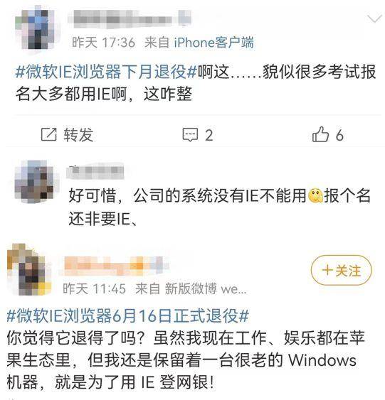 微博评论中有网友表示,目前有部分考试网站在线报名系统依然规定必须使用IE浏览器,一些公司的系统,银行网银同样只能用IE浏览器。